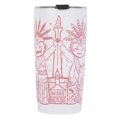 A cool tumbler mug with a super cool design! This mug is perfect for showing off your love for Indonesian culture while enjoying your favorite drinks from The Harvest