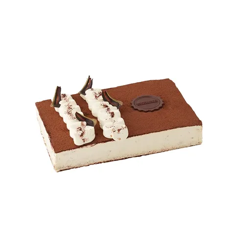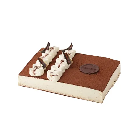 Vanilla sponge smeared with coffee, covered by soft cream mixed with tiramisu. More perfect with cocoa powder decorations on top.